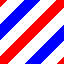 The pipes can be done in solid colors or with a texture. The default texture is a red and white candy cane pattern, but you can also choose a texture. For example I created the red, white and blue barberpoll pattern below. When the texture is inserted in 3D Pipes the screen saver produces what you see at the right.